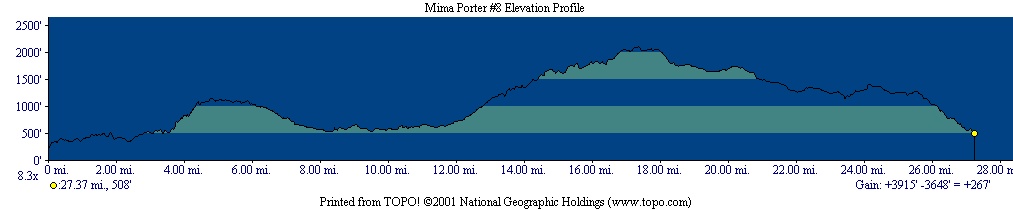 Mima Porter #8 leaves the facility in a northerly direction and generally goes in a north and westerly direction towards Porter creek campground. This trail