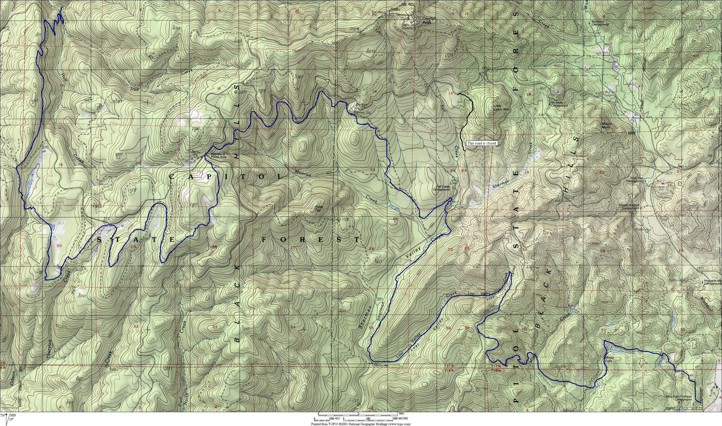is 31.9 miles long and crosses logging roads 13 times. There are at least 41 stream crossings, 11 of these crossings have bridges over the streams. This