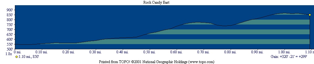 Access to Rock Candy West Trail is from the Rock Candy Trailhead at the North end of the forest. The trail begins in the SW ¼, NW ¼, Section 20,