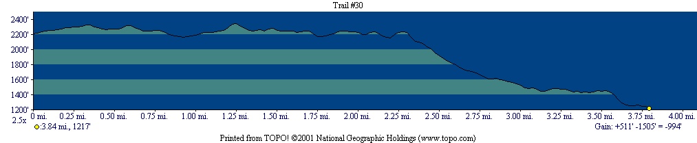 # 30 starts off Mt. Molly Porter #3 trail near the C-8200 in the SW ¼, SW ¼, SE ¼, Sec. 6, T17N, R3W. It crosses three roads and terminates back