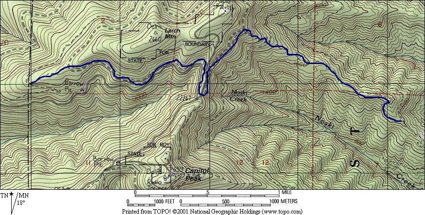 onto the Mt. Molly Porter #3 in the SW ¼, SW ¼, SW ¼, Sec. 2, T18N, R3W. There is one stream crossing on this trail.