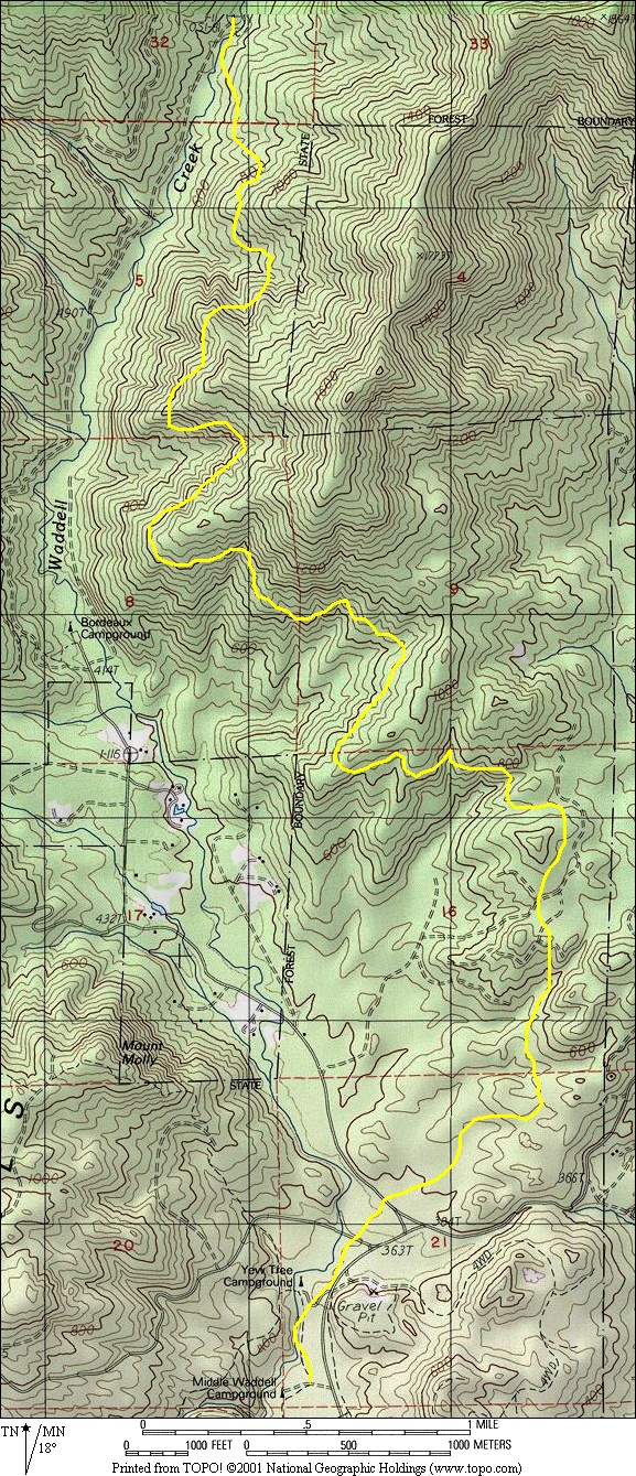 T18N, R3W it goes south and then in a southwest direction for about 1.0 miles and terminates on the North Rim #1 Trail at mile point