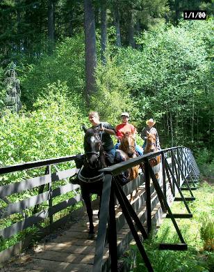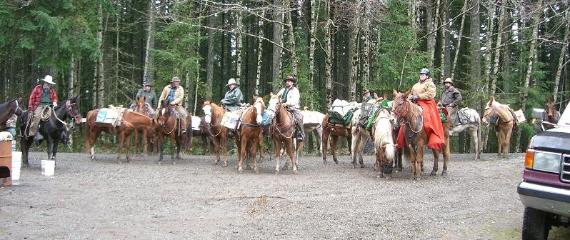 | Skills and Ethics for Equestrians as per The Backcountry Horsemen of Washington Be Considerate of Others Many people go into the backcountry to enjoy the peace and solitude a wilderness setting can provide. With increasing numbers of backcountry users, this solitude can be hard to find. Being considerate of others and practicing good camp and trail etiquette ensures that everyone enjoys the visit. Sound travels easily in the wilderness Be aware of your noise level. If you use bells, try to keep away from other groups. If you bring pets (check local regulations) keep them under control at all times. A well behaved dog can be an excellent companion on a backcountry trip. Conversely, a rambunctious dog can create impacts by digging, barking and frightening horses and wildlife, which can detract from yours' and other people's experience. Some backcountry users are unfamiliar with horses Few hikers know they should pull off on the downhill side of the trail, you may need to ask them to hold up while you pass. If instead, you are the one being overtaken, remember the hiker is packing a load and has a right to be on the trail too. Find a good spot to let them pass. A little conversation as you pass each other may reduce the chance of your horses being spooked. Riding in small groups will reduce dust. It will also make meeting and passing other groups easier and safer, especially in rough, rocky terrain. Exercise caution when meeting loose dogs, llamas, pack goats, bicycles or motorized vehicles. Any of these efforts work to create better understanding and appreciation between different backcountry user groups which benefits us all. Minimize Horse Impact Horses and mules have great potential for leaving long-lasting impact in the backcountry. They generate pressures up to 1500 psi on each foot. Horseshoes intensify those pressures and increase shearing force on soils and vegetation. As grazing animals, they compete with wildlife for available feed and can over utilize a meadow if not properly attended. As large animals reacting to fear, boredom, hunger and discomfort they can do damage very quickly. A frightened horse can girdle a tree within seconds if it is improperly tied and then sets back on the lead rope violently. In Popular Areas, Concentrate Use Concentrating use on durable surfaces is a simple and effective method of reducing the impact of your backcountry visit. Main travel corridors and popular destinations typically have well-established trails and campsites. Make decisions and choose practices that will cause the least amount of damage and leave only short-term impacts. Stay on trails Impact on wildlife, soil and vegetation can be minimized by traveling on constructed trails that, in many cases, have been designed to accommodate heavy use. Ride single file on the designated path. Do not shortcut trails or switch backs. Muddy stretches and most snow banks should be crossed, rather than skirted. If you carry a saw, you can help local land managers by cutting and removing deadfall in the trail. Rerouting trails around obstacles causes vegetation damage, erosion and development of multiple paths. Horses in a string cannot be perfectly managed. The attentiveness of the horse packer, length of the string and traveling pace are all factors affecting string management. If extremely difficult terrain must be negotiated, loose herding may be best while negotiating such terrain. Animals that are free to place their feet around obstacles are less likely to cause damage to the ground, to themselves, and to their handlers. Pull off for rest breaks When taking rest breaks, choose a site well off the trail so that others are not forced to leave the trail to go around you. When possible, pull off on a and wrap the lead rope around the trunk twice before you tie the knot. For extended breaks, use hobbles, highlines, or pickets. Tend the horses often. Nervous horses which trample or paw the ground while tied can be hobbled to prevent damage to the tree roots. Manure piles should be kicked apart and scattered, and any pawed ground should be filled in. |