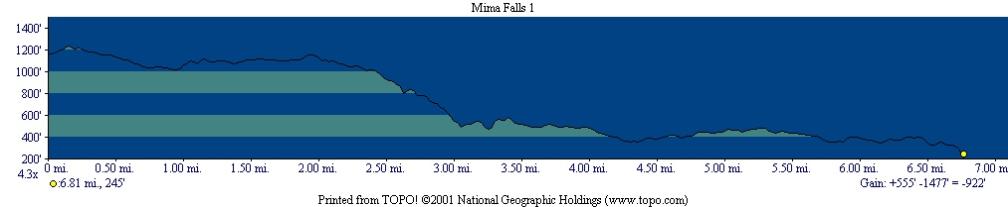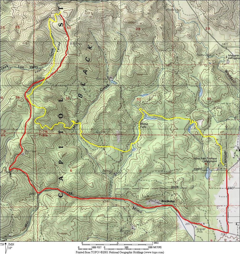 Route Description: Take trail #20 to the left off of D-4000 and stay left at the next two trail intersections to Mima Falls. Follow Mima Porter 8 back to Mima Falls trailhead.